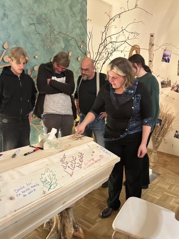 Erstellen Sie mit Familie, Freunden und Bekannten ein gemeinsames Erinnerungsalbum mit Fotos des Verstorbenen.